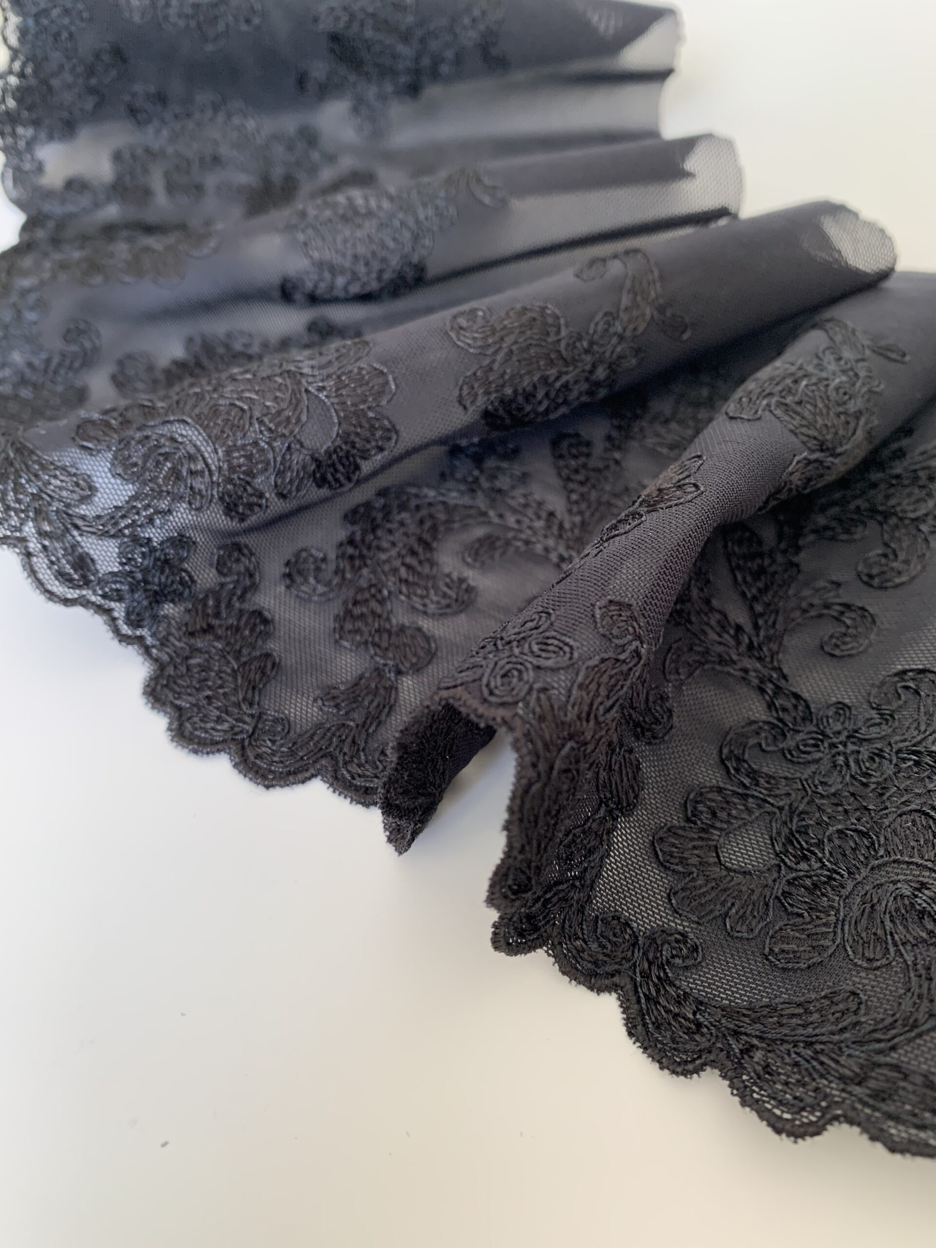 Вышивка на сетке эластичная цв.Черный ширина 12 см (art.К466-12-G) — Кружево для пошива нижнего белья